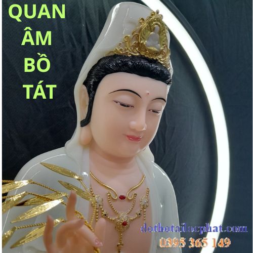 Mẫu tượng quan âm bồ tát bằng đá ngọc trắng đẹp tại Đồ thở Tài Lộc Phát.